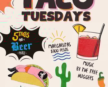 TACO TUESDAY: Todos los martes disfruta con nosotros el día del taco con musica en vivo por @thetreehuggersband, buena comida, buenos amigos y buen ambiente.