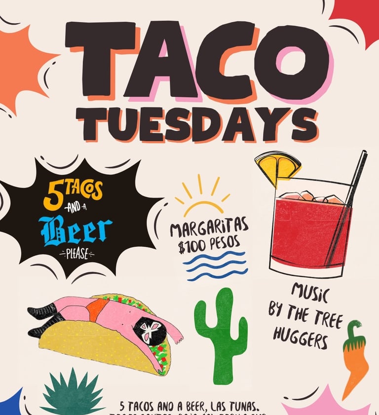 TACO TUESDAY: Todos los martes disfruta con nosotros el día del taco con musica en vivo por @thetreehuggersband, buena comida, buenos amigos y buen ambiente. Margarita clasica de limón $100 pesos TODO EL DÍA! Camino a las Playitas SN, Las Tunas, TODOS SANTOS, BAJA CALIFORNIA SUR.